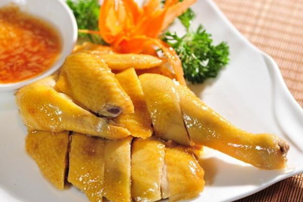 6. 水法:把雞放在熱湯內(nèi)浸熟后,撕離骨,肉、皮用麻油,精鹽等味料拌和,再砌成雞形上碟。此法肉滑皮爽,但香味稍次于傳統(tǒng)鹽雞。