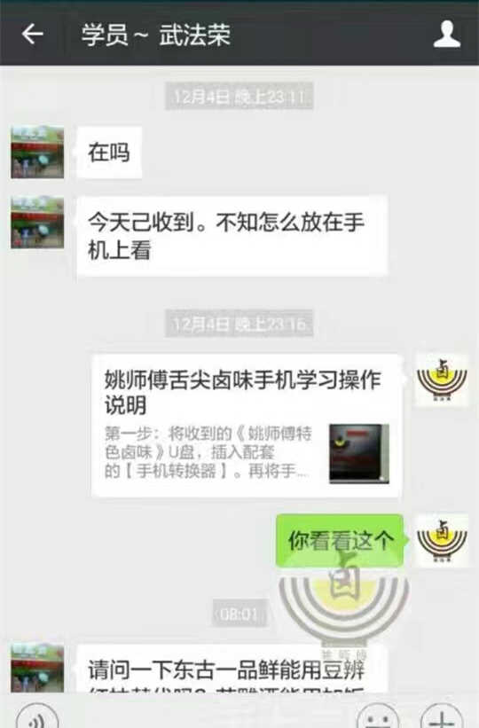 2016年12月1日武先生通過網絡搜索到了舌尖上的鹵味視頻教學,通過與姚師傅的交流溝通,發現舌尖上的鹵味視頻教學口味多樣、菜品豐富。