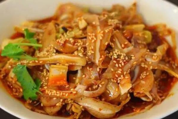 7、豬皮煮好了取出切條。