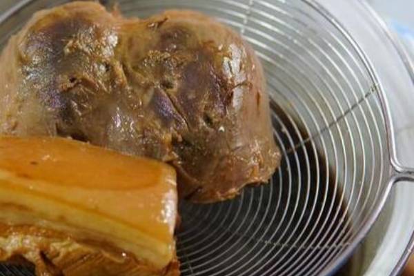 第五步,蓋上鍋蓋,中小火慢鹵一個小時,微火再燜半個小時入味即可。這樣鹵出來的肉特別好吃,百吃不厭。把豬心和五花肉都切成片,慢慢享用美味吧!