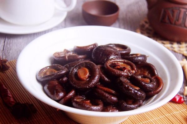 原 料:鮮香菇十幾朵,植物油20克,桂皮5克,大茴香2克,姜一塊,蔥一根,精鹽1克,麻油10克,雞湯一小鍋,糖色水一小碗。