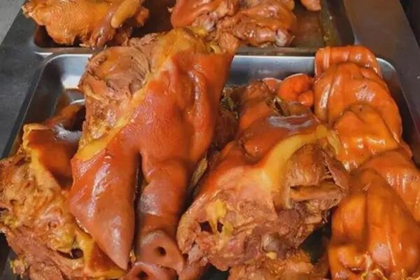 先將其清洗干凈,加適量水,加鹽,加入亞硝酸鈉(10斤水中加1克,起疏松、發紅及縮短鹵制時間,其加入量不可超量,否則出現中毒現象)進行腌制,冬天腌制24小時左右,春天腌制12小時左右,夏天腌制5-6小時。