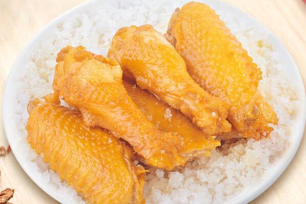 香料水:1500g、腌制好的雞翅:1000g、食鹽:30g、味精:15g、白糖:10g、I+G:0.08g、乙基麥芽酚:6g、紅曲紅色素:0.05g、一品雞肉提取物6921:20g (增強(qiáng)肉感)、一品鮮味王D1026:2.5g(提升鮮味)。