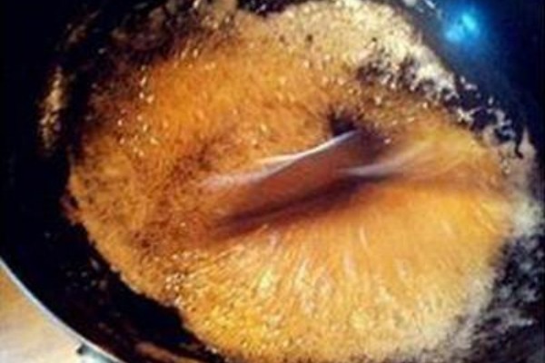 炒糖色的油一定不能太多,如果油太多,會附著在糖液的表面上,不利于觀察其色澤,影響判斷,增加炒糖色的難度。