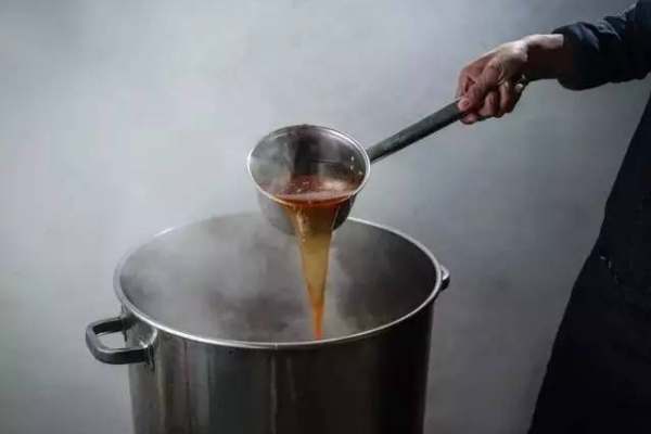 5、夏天氣候炎熱,是鹵水極易變質的多發期,發泡,變酸現象頻繁出現,因此,每天必須將鹵水燒開兩次早上一次,下午一次,并且固定不動)。雖然秋季溫度逐漸下降,但是暑熱未完,俗話說的好七霉、八爛、九生蛆,因此,鹵水還是應該燒開最少2~3次,放在固定的地方不動。冬季溫度逐步下降,鹵水應該每天燒開一次,放在固定的地方不動。