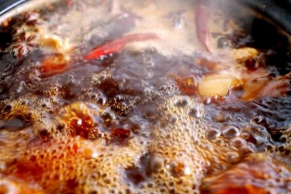 解決方案是:只留一半的鹵水,然后高湯加糖,并減少糖色的用量,糖色雖然可以使老湯紅潤鮮亮,但由于長時間高溫鹵煮,糖色很容易在高溫下發(fā)生焦化而導(dǎo)致老湯發(fā)苦,減少導(dǎo)致發(fā)苦的香料的用量,更換鹵鍋,重新調(diào)味,控制鹽的用量,這樣就可以改善鹵水的苦味。