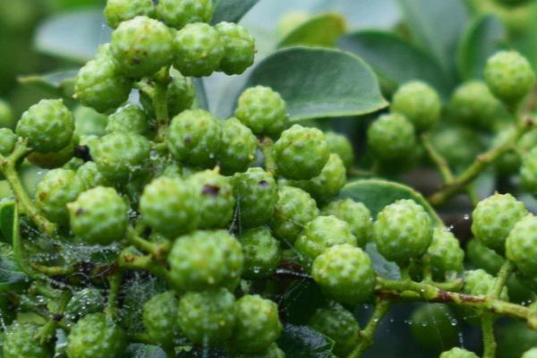 藤椒:最后我們來說藤椒,它是花椒的近親,藤椒香味清新,沒有麻椒的苦澀味,藤椒枝葉披散,結的籽像葡萄一樣一串一串的,而麻椒則比較松散。藤椒的麻味比較溫和,并且含油脂豐富,還有“油椒”的別稱。藤椒的果實飽滿,顆粒偏小,呈青綠色,往往會整串使用,新鮮采摘的藤椒一般會有三種用途:曬制成干藤椒、保鮮藤椒和制作藤椒油:保鮮的藤椒麻味綿長、柔和且純正,現在一般運用于涼拌菜、拌面和調制火鍋蘸料比較多,比如鹵菜店單品爆款藤椒雞、椒麻雞就有運用;之前群里老有人不清楚藤椒油和花椒油的區別,今天統一作答:藤椒的香味比花椒清香,麻味也更顯柔和清新,所以藤椒油風味也比花椒油更清香濃郁,當然價格也是略貴一點,在涼拌菜里,藤椒油會用得多一些,這是因為涼菜要呈現給顧客的是一種清新開胃的效果,花椒油的醇厚就不適合;藤椒雖然味道清新,不過它的麻味容易揮散,而且回味里會帶有一點點回苦,是不適合在鹵水中使用的,因為加熱會放大它的苦味。
