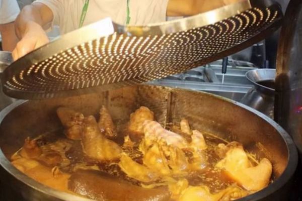 老湯,是指使用多年的鹵煮禽、肉的湯汁,煮熟主料后,將肉食撈出食用,揀出調(diào)料,潷凈雜質(zhì)所得湯汁即為“老湯始祖”。