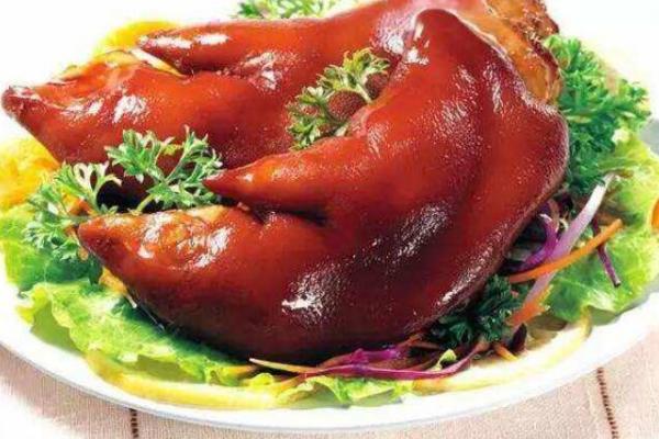 醬豬蹄是一道傳統名菜,在各大菜系中都有此菜,味道咸香、酥軟,色澤艷麗。主料是豬蹄,以醬油、鹽、花椒等配料燉制而成。豬蹄含有豐富的膠原蛋白,可做食補用。醬豬蹄美味又可口,那么,家常醬豬蹄的材料及方配是怎么的呢?下面由小編給大家詳細介紹一下: