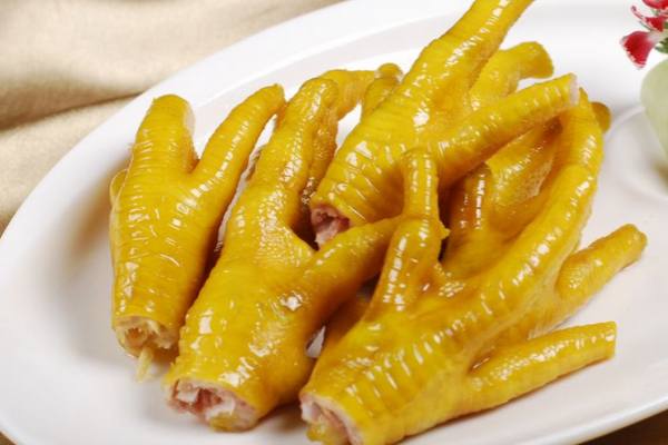 燒開水后放入幾片姜,把雞爪放進去,待燒開1 —2分鐘(雞爪7成熟);撈出來放入冰水里泡10分鐘;用冷開水或者純凈水(冷的)清洗兩邊,放入鹽焗雞料水中鹵制。