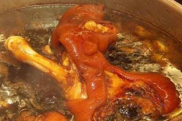 ②將香料袋、蔥結(jié)、姜塊、水酒、白醬油、精鹽、味精、骨湯一起放入鹵鍋內(nèi),調(diào)勻即可。此配方適宜于鹵制10~12千克的生鮮原料(家庭可按比例減少調(diào)味料的數(shù)量)。