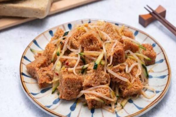 市面上的面筋主要有三種:油面筋、水面筋和干面筋。干面筋其實就是把普通面粉洗出來的面筋,經過發(fā)酵、蒸熟、干燥而成,是一種很方便的素食食材。因為看起來蓬松多孔,就像海綿一樣,所以又叫海綿面筋。這種面筋吸汁能力超強,做成酸辣面筋是再合適不過了。