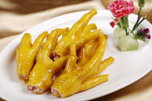 3、沖泡:將氽燙后好的雞爪撈出,用流動水沖洗干凈瀝干水分備用;