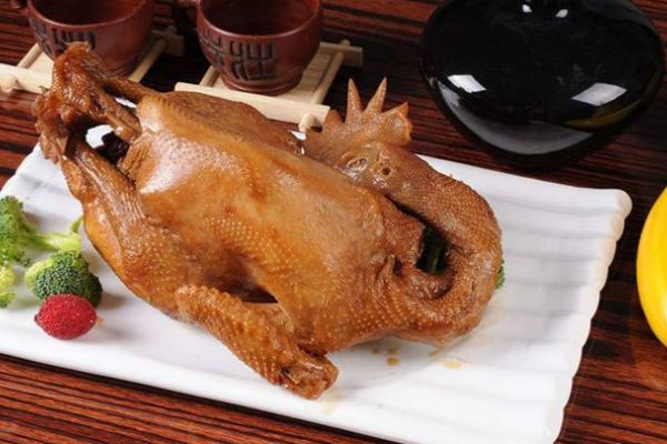 3、風干后的雞在油溫160度左右的油鍋中炸一遍,炸到表面金黃即可撈起。4、將20克麥芽糖用80克溫水化開調勻后,均勻抹在雞表面,寬油入鍋,油溫6-7成熱,小火炸至金黃后撈出,控油瀝干;