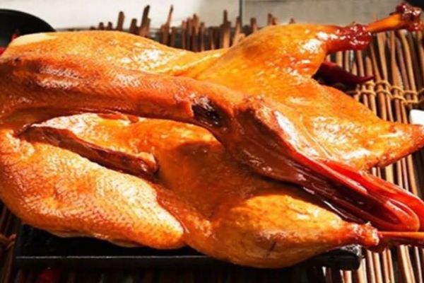 3 、鴨子是用鴨油(烤鴨時滴落的鴨油,當然剛開始可用色拉油,在高壓力鍋炸制時,油一般不會變黑,這油可反復用)炸制的,長時間放置,色澤會發(fā)生褐變,因此最好是當天售完。